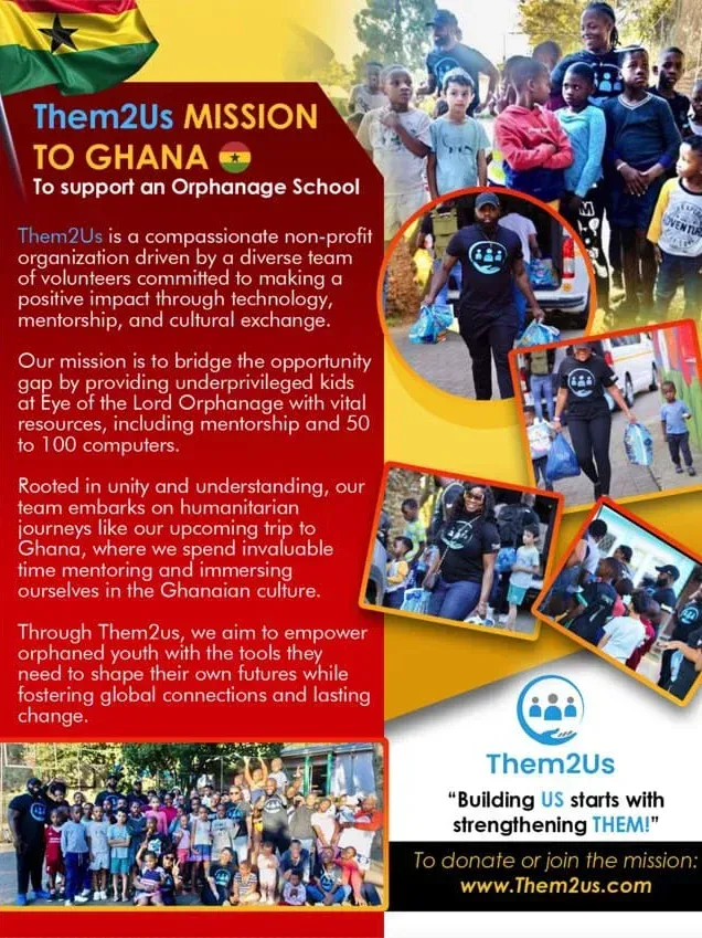 Them2us is on a mission to connect like-minded professionals, advocate for our community, provide inner-city kids and young adults access to STEM-related programs and training, and conduct impactful humanitarian missions in Africa. We believe in making a positive change, but we can't do it alone.